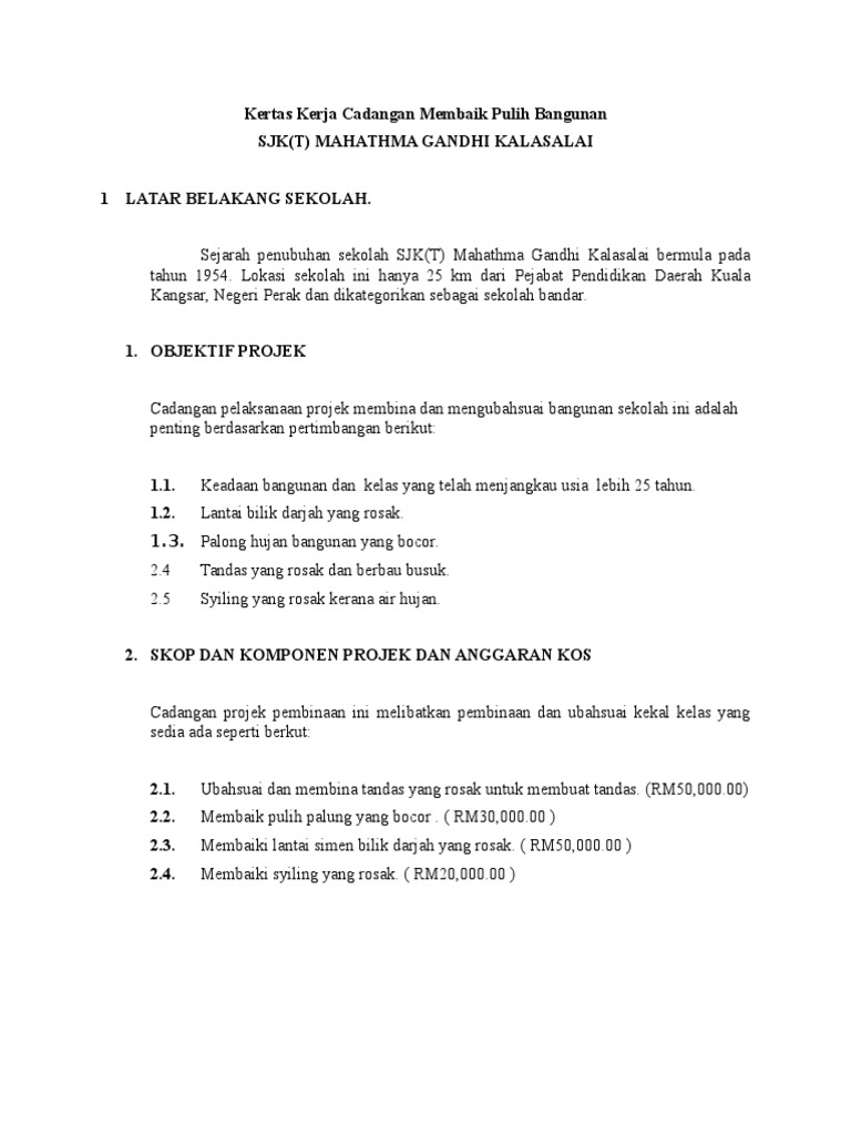 Kertas Cadangan Kerja Kursus Sejarah. Contoh Kertas Kerja Cadangan Penubuhan Persatuan Bahasa Melayu. Text of kertas cadangan kajian tindakan contoh.